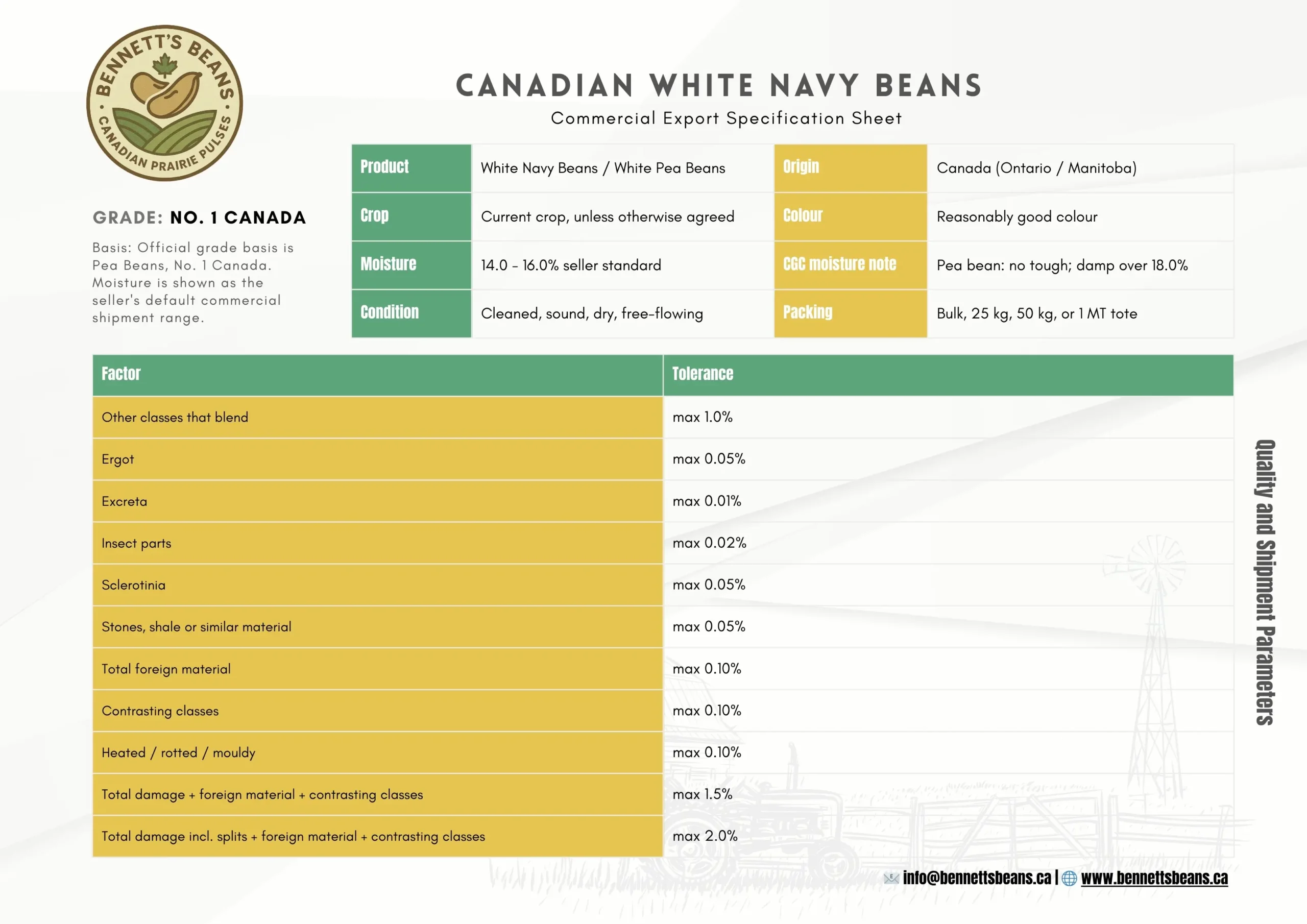 Our Canadian navy beans are available for wholesale and bulk supply programs serving importers, canners, and food manufacturers. Bennett’s Beans helps buyers source bulk navy beans with lot-confirmed specifications, practical pack sizes, and export coordination for repeat wholesale business across international markets.